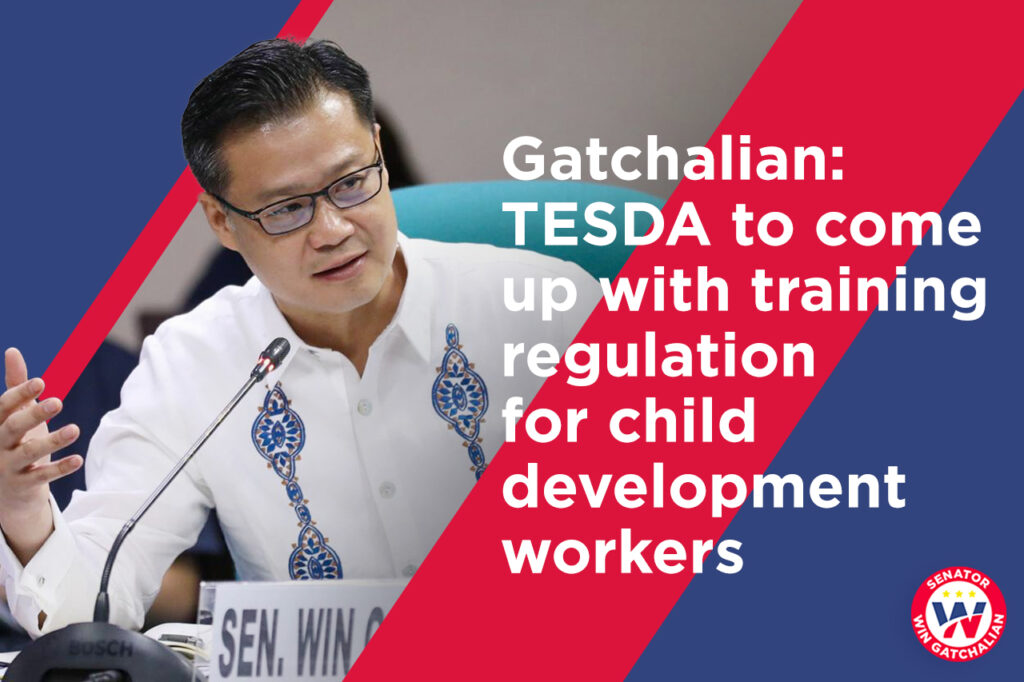 The proposed 2024 national budget will mandate the Technical Education and Skills Development Authority (TESDA) to come up with a training regulation for child development workers (CDWs), Senator Win Gatchalian said.